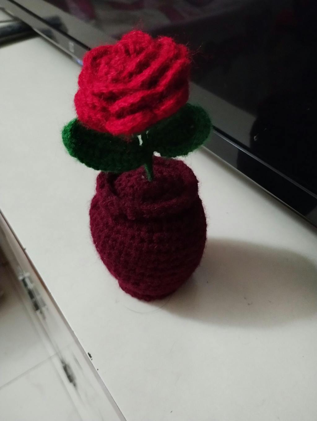 - Crochet handmade Red Rose Pot : 1 stem